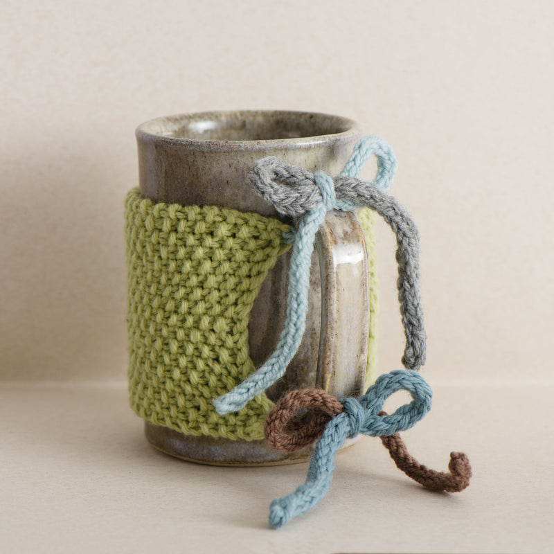 A Free Mug Cozy Knitting Pattern With A Simple Cable Stitch Detail